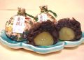 ▼二日がかりで煮上げました小倉あんに寒天も入り、軟らかい栗を包んであります。 ・アルミ箔紙が外側を茶巾絞りに包んでおり、見た目にも上品に、食べても格調高い味わいです。 ・このお菓子は、常温でもかなりの日持ちが致します。